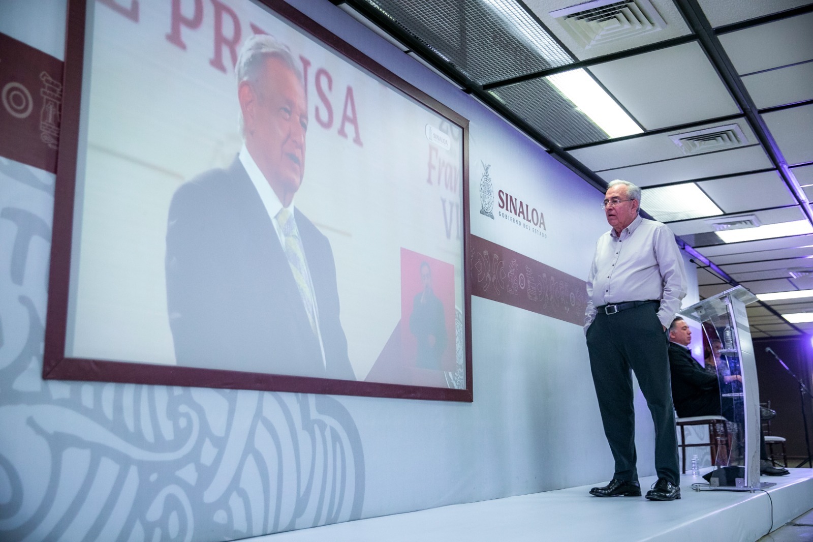 Durante su Conferencia Semanera, el gobernador Rocha proyectó un fragmento de la conferencia mañanera que a su vez ofreció este mismo lunes el presidente de México, donde reiteró que SEGALMEX comprará un millón y medio de toneladas de maíz de Sinaloa a pequeños y medianos productores de hasta 15 hectáreas, contrario a lo que ocurría en el pasado, donde se entregaba un subsidio a los grandes productores, pues ahora se asegura primero la comercialización de los pequeños agricultores.