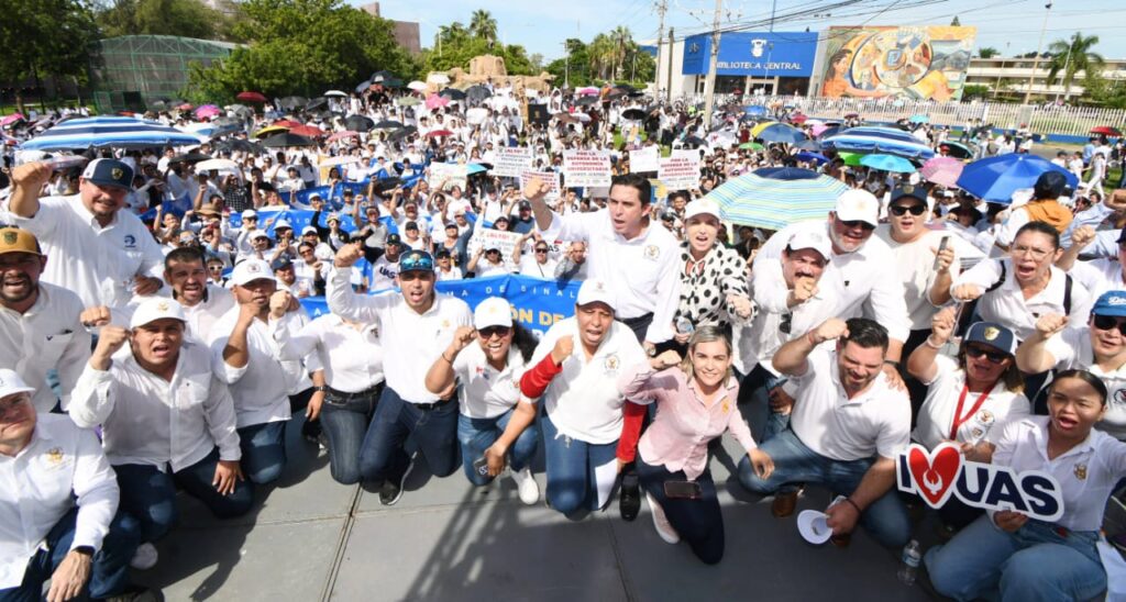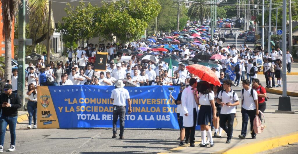 “En su conjunto fueron más de 15 mil universitarios que a la misma hora en punto de las 9 salimos a marchar, a exigirle al gobierno que pare ya con los ataques, que pare ya con la persecución política, que seda al abuso de poder que está ejerciendo contra la Universidad Autónoma de Sinaloa; cuyo principal objetivo y misión es fortalecer el tejido social de las futuras generaciones a través de la formación del conocimiento y la formación integral, agradecerles a todos y cada uno de los que asistieron”, enfatizó el funcionario.