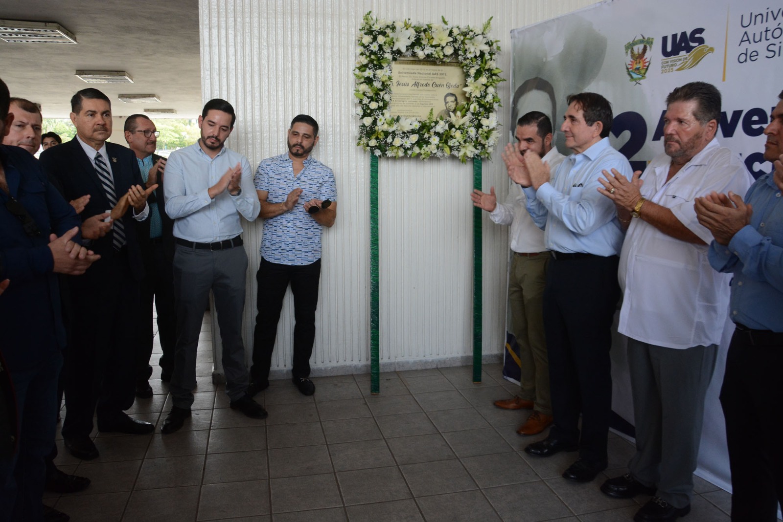 En las instalaciones del Polideportivo que lleva el nombre del homenajeado el encargado del Despacho de Rectoría, doctor Robespierre Lizárraga Otero encabezó la colocación de una ofrenda floral y guardia de honor en compañía de hermanos e hijos del doctor Alfredo Cuén.