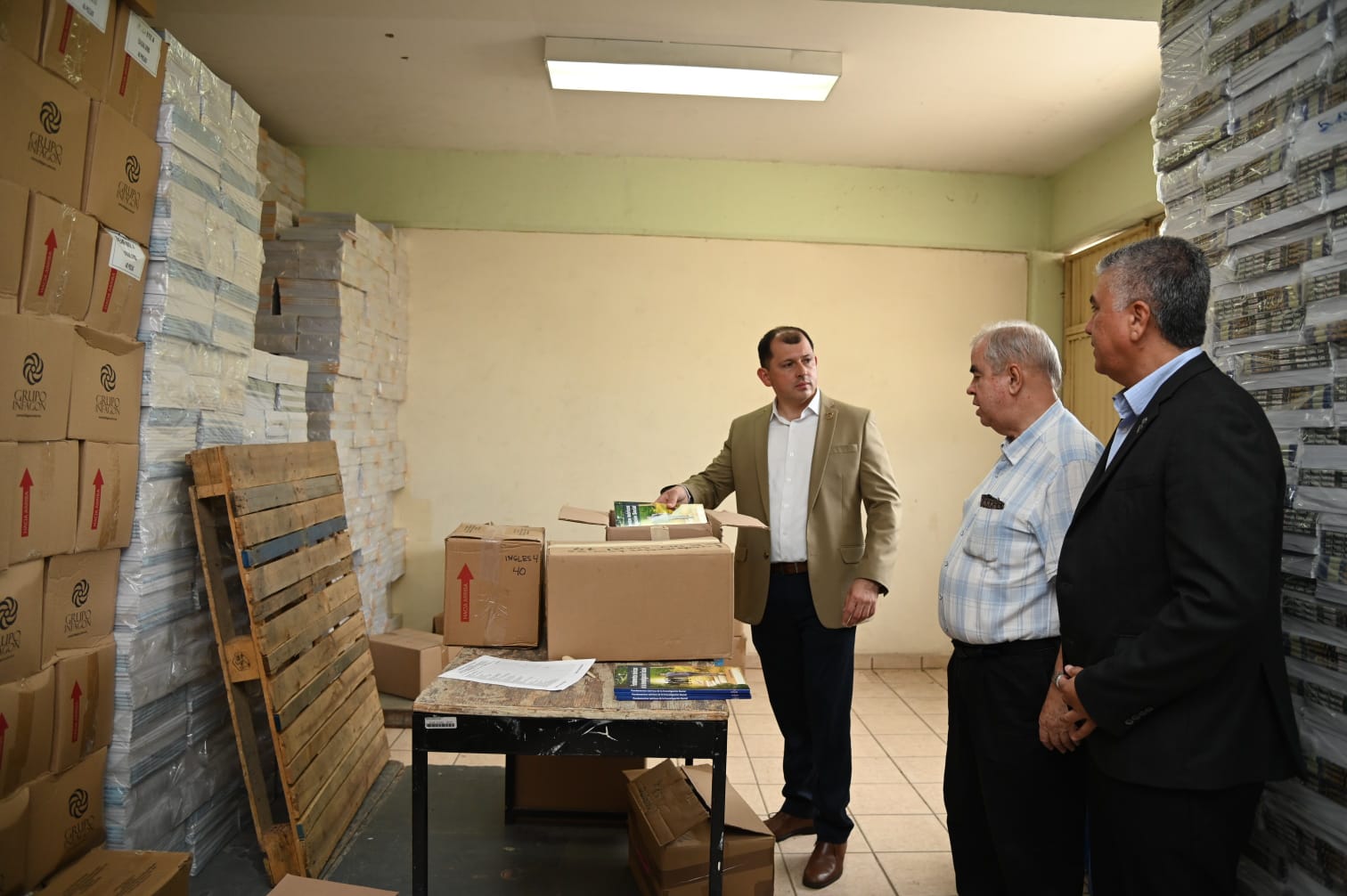 Para cerrar con broche de oro el recorrido, Flórez Arco, los dirigió a el auditorio y bodegas de las instalaciones donde se resguardan los más de 450 mil ejemplares de los 21 títulos que conforman las asignaturas y diferentes grados de este nuevo ciclo escolar, por lo que aseguró se encuentran listos para iniciar su distribución en los 103 planteles del Nivel Medio Superior que la Casa Rosalina tiene en los 20 municipios del estado.