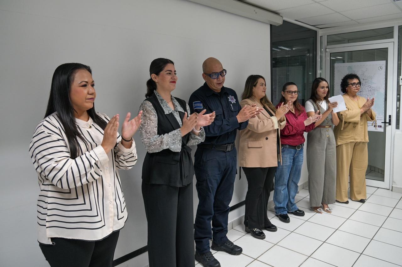 En representación del Secretario de Seguridad Pública y Tránsito Municipal, participó el Mayor Jonathan Macedo Ramírez, Director de la Unidad de Policía Municipal Preventiva, quien reafirmó el compromiso institucional de continuar colaborando con la Secretaría de las Mujeres en acciones de formación y sensibilización, pues las y los agentes son primeros respondientes en llamadas al 911, cuando ocurre un episodio de violencia en el hogar.