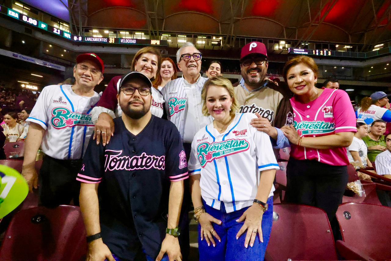 El gobernador Rubén Rocha Moya, acompañado por su hija, la presidenta del Sistema DIF Sinaloa, Eneyda Rocha Ruiz, y por toda su familia, acudió este domingo por la tarde al estadio de Los Tomateros, para presenciar junto con los miles de sinaloenses que colmaron el graderío, el partido que la escuadra guinda sostuvo con Los Venados de Mazatlán, considerado ya un clásico por la añeja rivalidad deportiva entre ambas novenas.