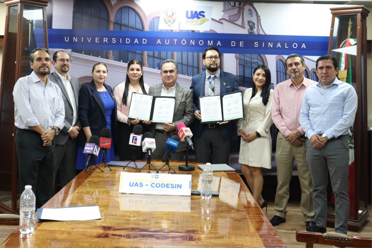 La Universidad Autónoma de Sinaloa (UAS) firmó un Convenio General de Colaboración con el Consejo para el Desarrollo Económico de Sinaloa (CODESIN) y se convierte en la primera institución en establecer una colaboración formal dentro de la estrategia Sinaloa 10 que busca, con una visión hacia el año 2050, posicionar al Estado de Sinaloa entre los 10 más competitivos de México.