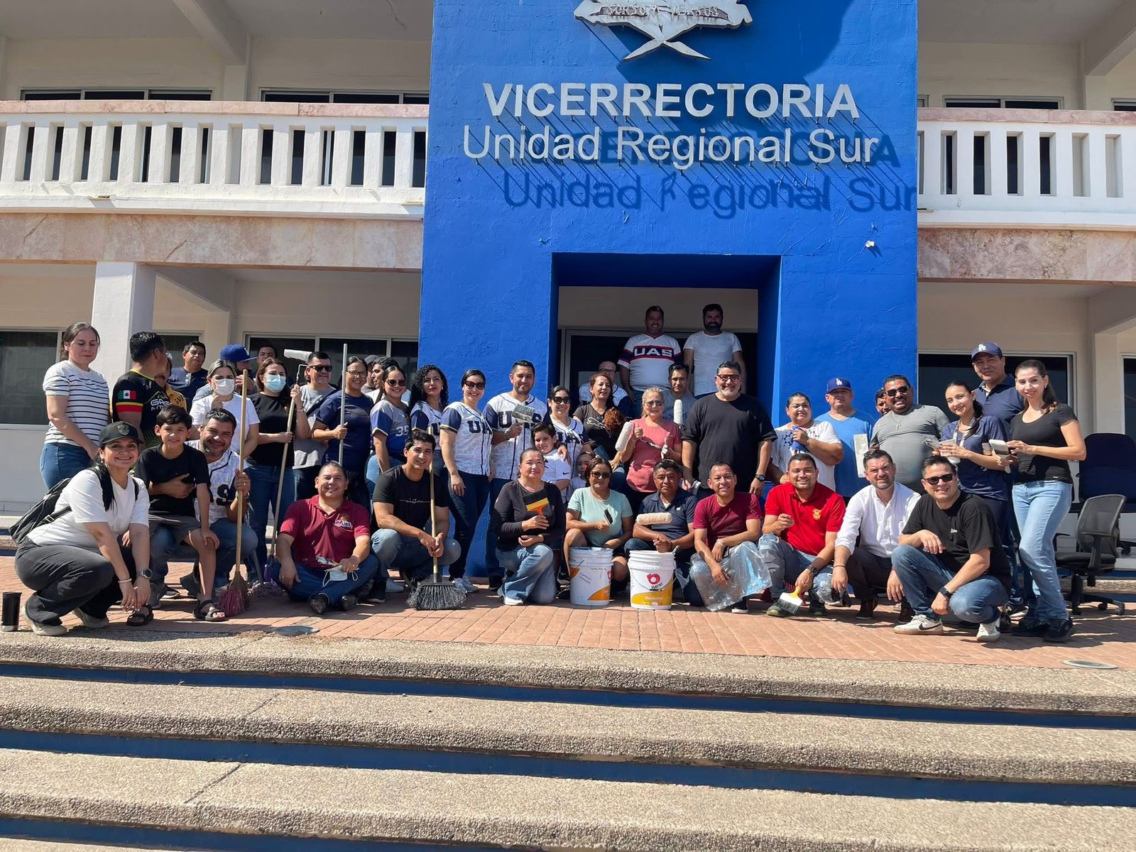 “Las Unidades Organizacionales en la zona sur se suman al Reto Mejora haciendo actividades de pintura, mejoramiento de áreas verdes, limpieza de oficinas, ordenamiento de archiveros; todo el equipo que integran las unidades organizacionales aquí en Mazatlán se suman al Reto Mejora. Muchísimas gracias. ¡Somos grandes, somos UAS!”, compartió Tostado Ramírez.