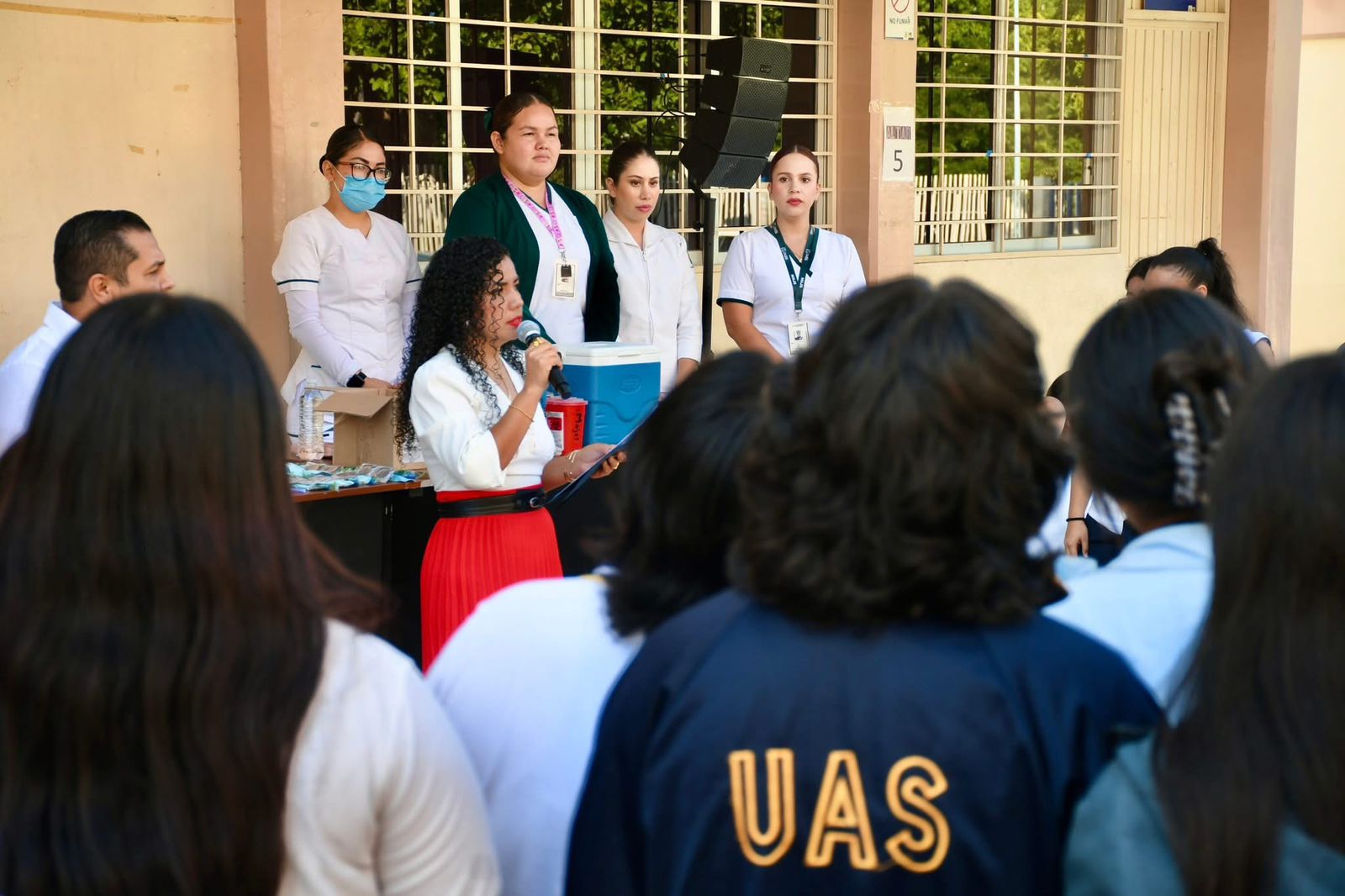 Fue en el marco de la Jornada Nacional de Vacunación y representando al Dr. Manuel Iván Tostado Ramírez, Vicerrector en la Región Sur, que la Maestra Gloria María Peña García, Coordinadora de Prestaciones Sociales de la zona, remarcó que se busca proteger la salud de los estudiantes mediante la prevención de enfermedades.