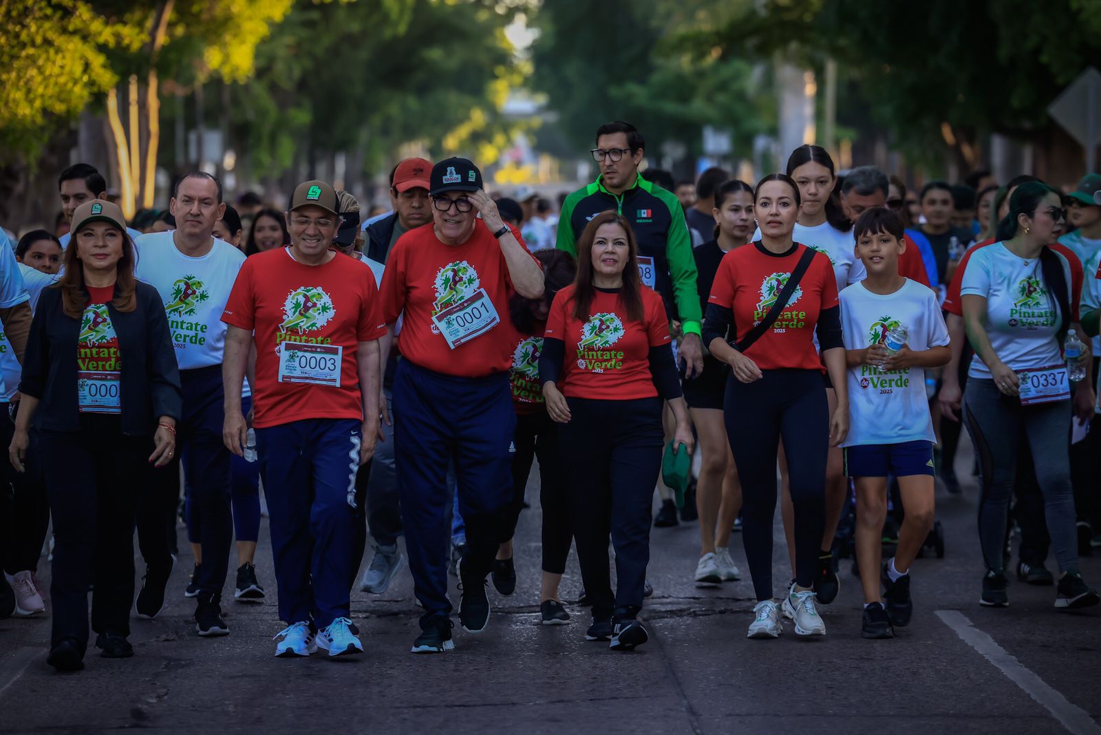 Culiacán, Sinaloa 23 de noviembre de 2025.-* En una jornada deportiva y de sana convivencia con las y los sinaloenses, el gobernador Rubén Rocha Moya, dio el banderazo de arranque y encabezó la décima edición de la carrera “Píntate de Verde”, convocada por COBAES, cuyo propósito es fortalecer la armonía familiar y social, así como la conciencia ecológica a través de la actividad física.