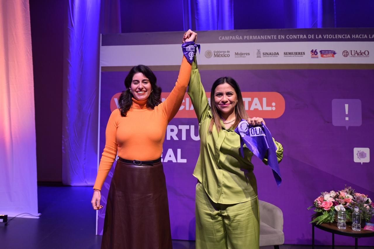 Culiacán, Sinaloa, 10 de diciembre de 2025. En el marco del cierre de la campaña internacional de los _16 Días de Activismo contra la Violencia de Género y el Día Internacional de los Derechos Humanos_, se llevó a cabo la conferencia magistral, “Violencia Digital: Lo virtual es real”, impartida por la activista y abogada Olimpia Coral Melo Cruz, impulsora de la Ley Olimpia y reconocida defensora de los derechos digitales.