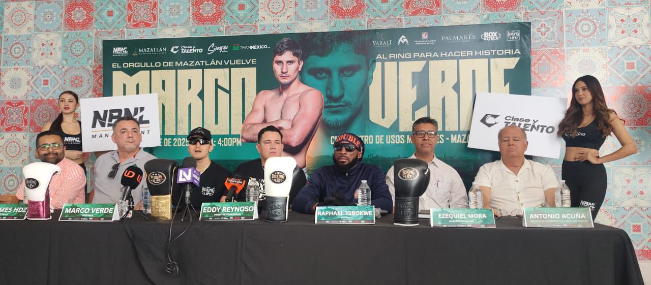Con el propósito de consolidarse en su tierra, Marco Alonso Verde Álvarez, estudiante de la Unidad Académica de Gastronomía y Nutrición de la Universidad Autónoma de Sinaloa, contenderá este sábado 13 de enero su cuarta pelea profesional en los 71 kilogramos contra el nacido en Nigeria pero radicado en Texas, Raphael “Trouble” Igbokwe, en el Centro de Usos Múltiples del puerto de Mazatlán, Sinaloa.