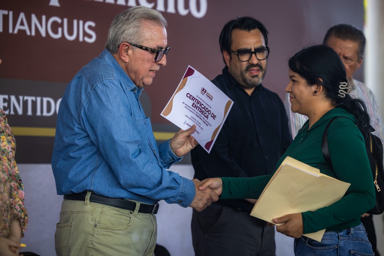 Culiacán, Sinaloa 21 de enero de 2026.- Impulsando el desarrollo económico popular y el autoempleo, el gobernador Rubén Rocha Moya, encabezó la entrega de 300 apoyos del programa “Nuestro Tianguis”, una iniciativa estatal que ofrece herramientas de capacitación y equipamiento gratuito para mejorar el negocio de los pequeños comerciantes, con ello, dignificando el trabajo de las y los tianguistas brindándoles herramientas para mejorar sus ingresos y condiciones de trabajo.