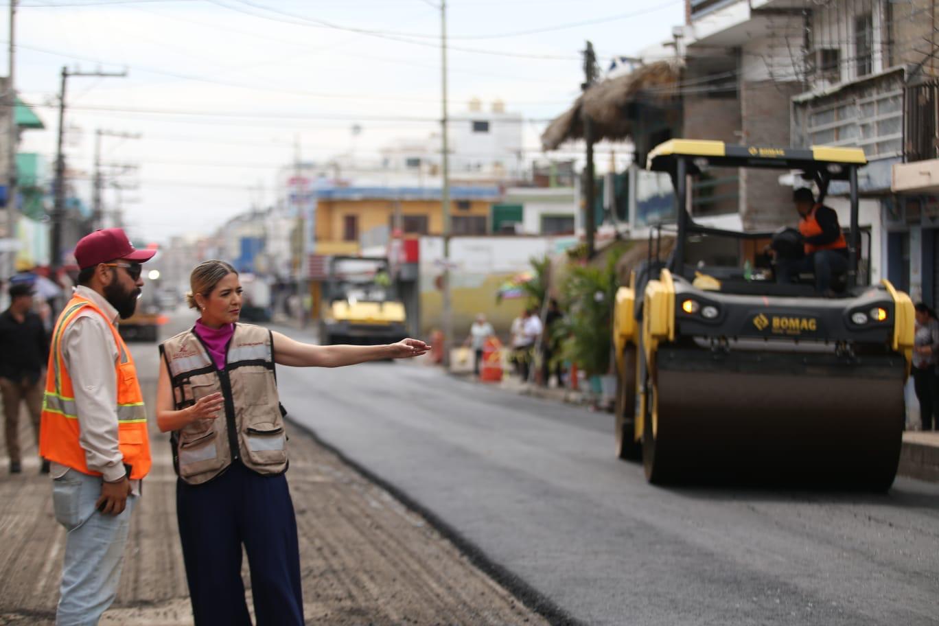 La Presidenta Municipal supervisa los trabajos de reencarpetado en avenidas y calles del Centro de la ciudad.