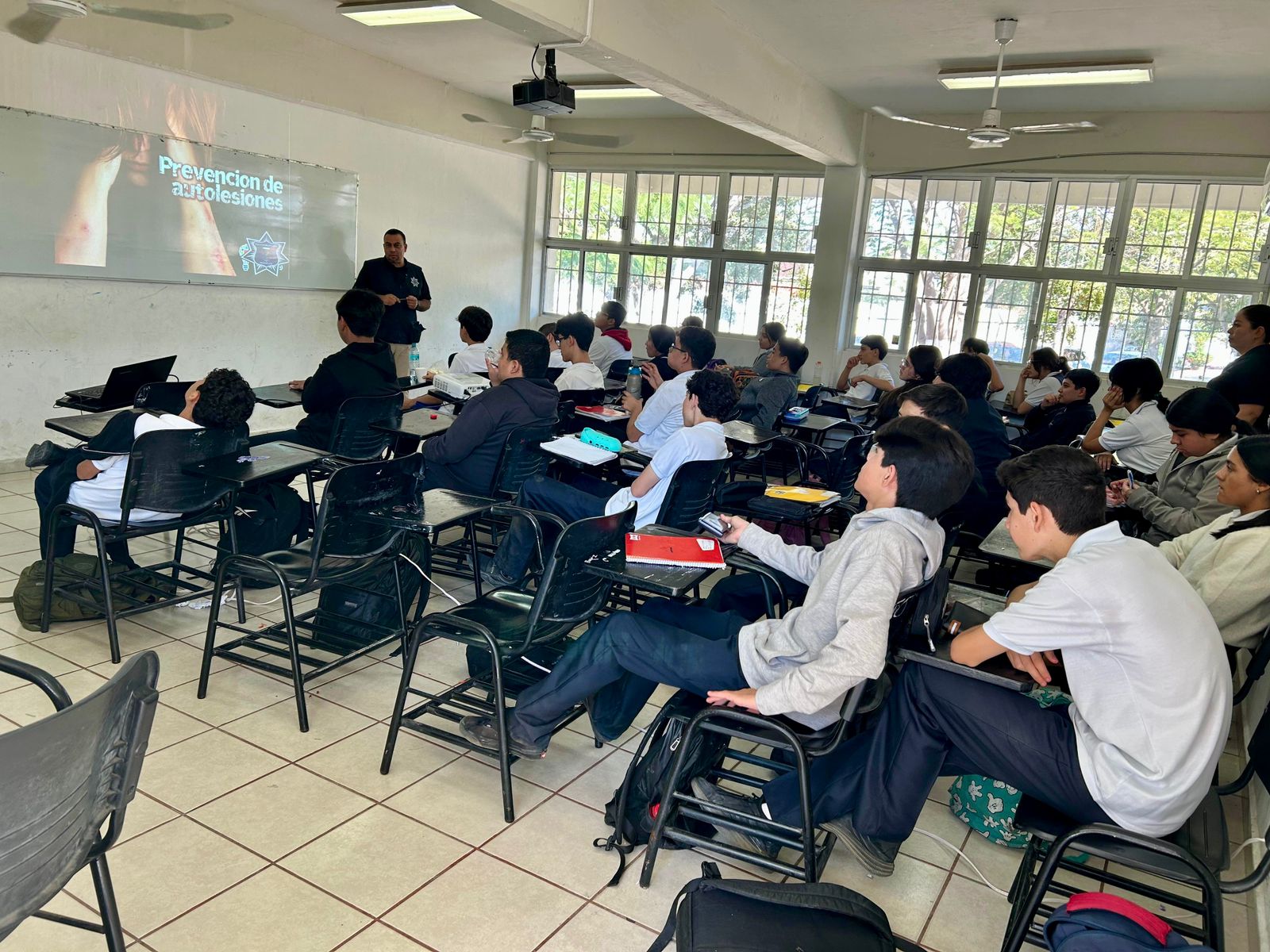José Uriel Caldera, titular del Departamento de Programas Preventivos, informó que en esta ocasión la visita se realizó en la Escuela Secundaria Torrontegui, ubicada en el fraccionamiento Prados del Sol, donde se impartió una plática dirigida a alumnos de tercer grado enfocada en la prevención de autolesiones y sus consecuencias.
