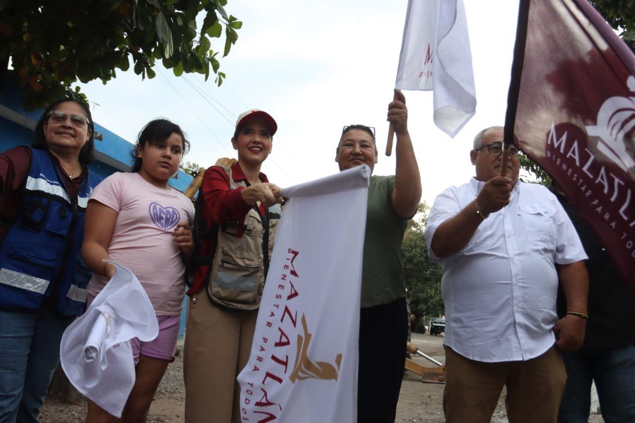 Mazatlán, Sinaloa, 9 de febrero de 2026.- Este lunes, la Presidenta Municipal, Estrella Palacios Domínguez, dio el banderazo de arranque a los trabajos de una obra de pavimentación en la colonia Federico “Lico” Velarde, la cual se realizará con recursos propios del Ayuntamiento, con una inversión de 1 millón 681 mil 667 pesos, la cual contará con la tubería de agua y drenaje totalmente renovada.