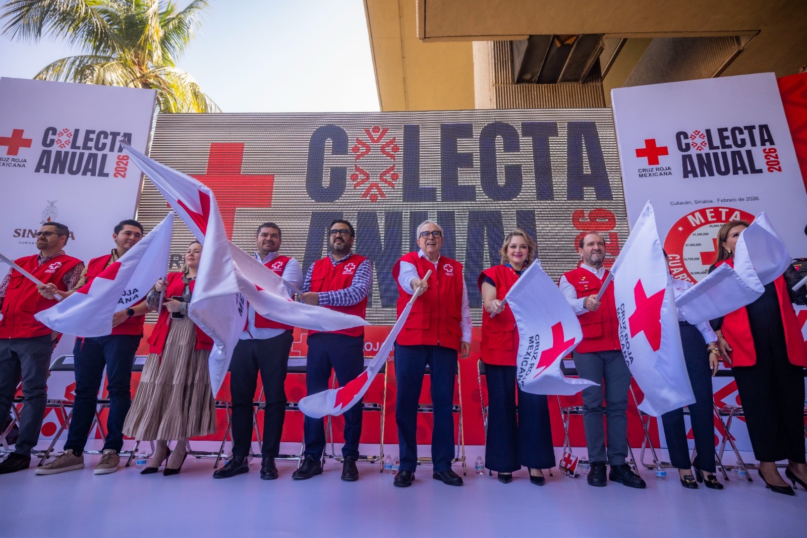 Culiacán, Sinaloa 23 de febrero de 2026.- Celebrando los 116 años de la fundación de la Cruz Roja Mexicana, el gobernador Rubén Rocha Moya, dio el banderazo de arranque de su colecta nacional 2026 de esta benemérita institución, la cual, mediante el slogan, “Esto que ves, lo hacemos juntos”, esperan recaudar la suma 45 millones de pesos en la entidad.