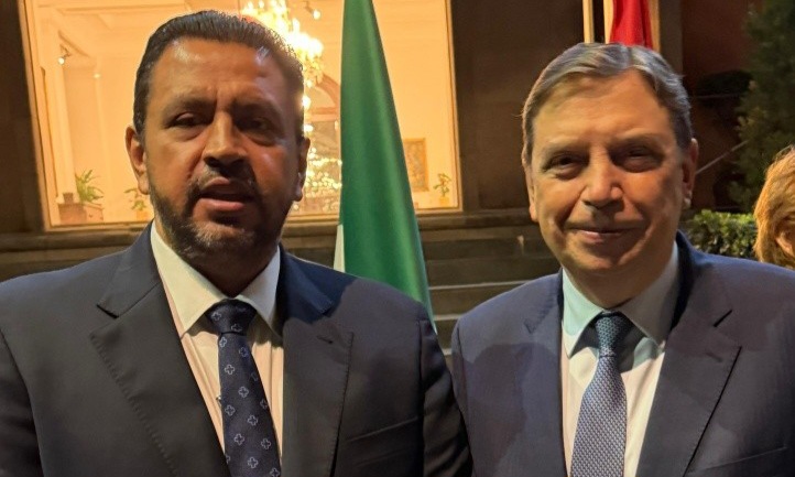 Conversa con el Embajador y el Ministro de Agricultura español, abordando temas coincidentes de alimentación.