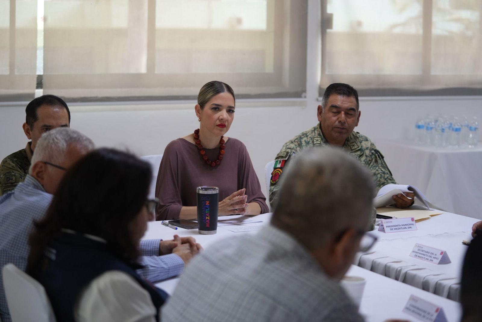Mazatlán, Sinaloa, 7 de abril de 2026.— Con el objetivo de dar seguimiento a las acciones de seguridad y resguardo de locales y visitantes durante el periodo vacacional de Semana Santa y Semana de Pascua, la Presidenta Municipal, Estrella Palacios Domínguez, participó este martes en la Mesa de Coordinación para la Construcción de la Paz, realizada en las instalaciones de la Tercera Región Militar.